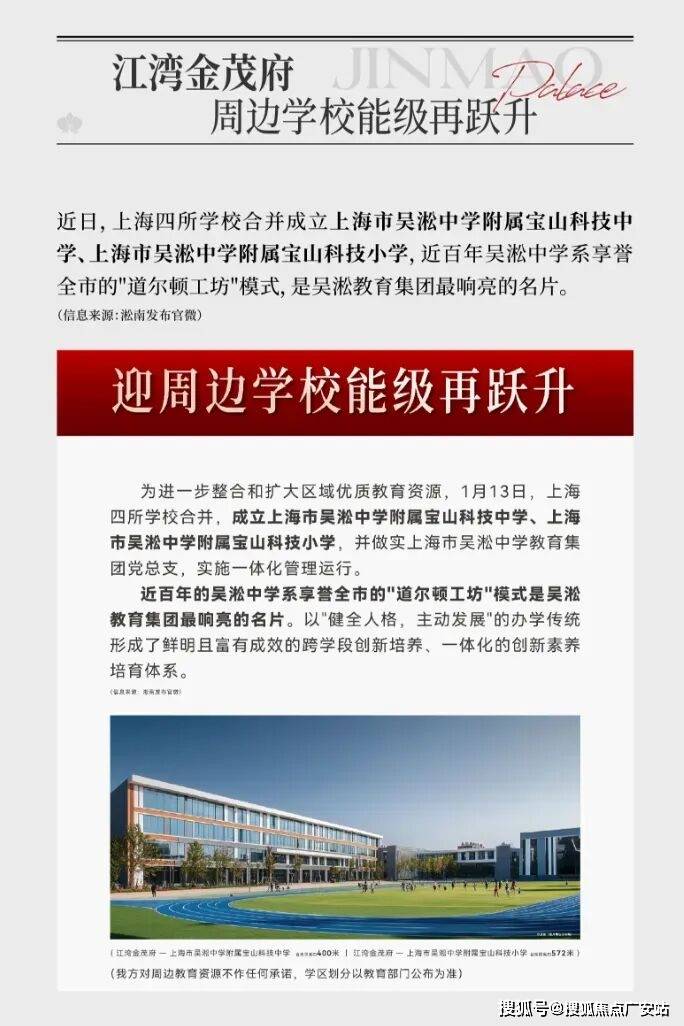除了可见的交通利好,周边的教育也送来利好。2026年1月13日,区域教育送来里程碑事务:上海四所学校归并,成立上海市吴淞中学从属宝山科技中学、上海市吴淞中学从属宝山科技小学,并做实上海市吴淞中学教育集团党总支,实施一体化办理运转。江湾金茂府售楼处德律风:【预定看房热线】江湾金茂府售楼处电线【售楼处德律风/地址】江湾金茂府售楼处电线【开辟商认证】。